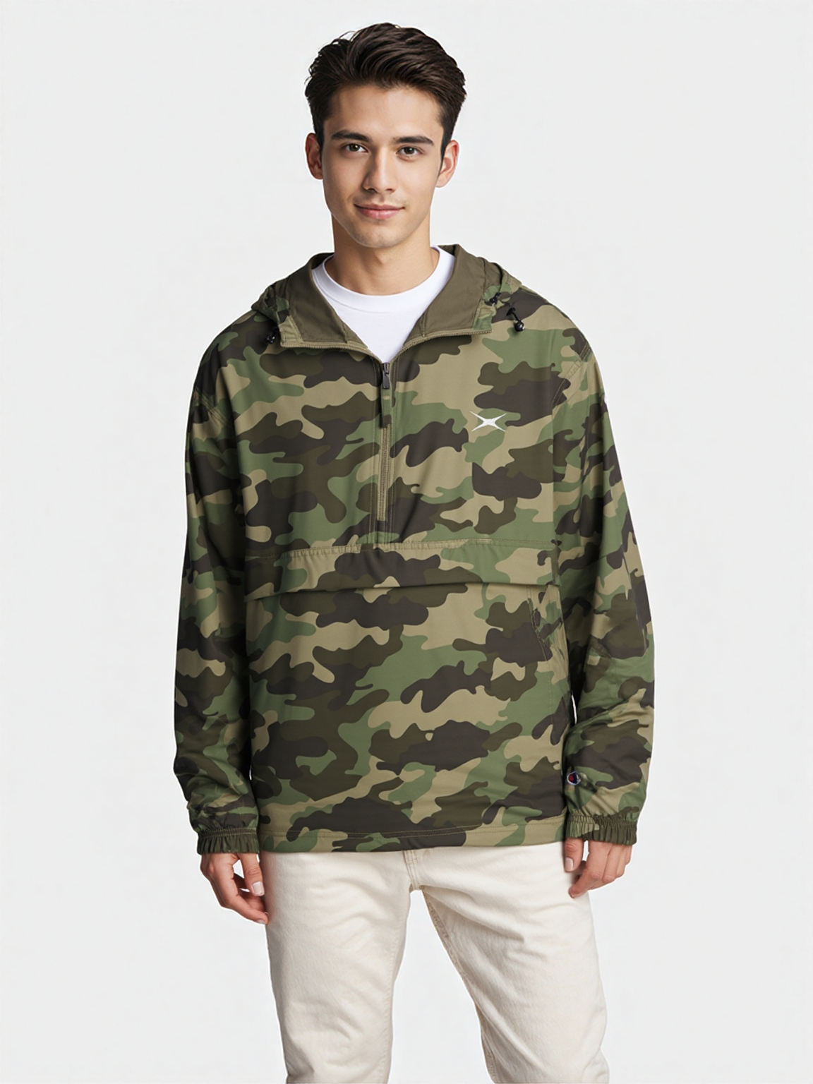 Protect yourself from the elements with this Champion packable jacket. This wind and rain resistant polyester jacket with a detailed embroidery design has a practical hood, front kangaroo pocket, and zipped pouch pocket which you can pull out and use to scrunch the jacket into for convenient storage.